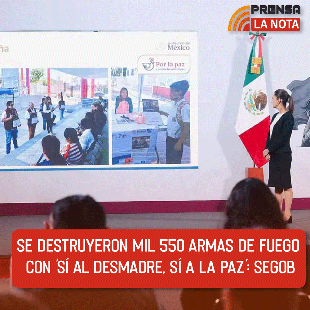 La acción coordinada “Sí al Desarme, Sí a la Paz”, que inició el 10 de enero, ha permitido la entrega voluntaria y anónima de mil 550 armas de fuego, las cuales han sido destruidas, informó la secretaria de Gobernación, Rosa Icela Rodríguez.