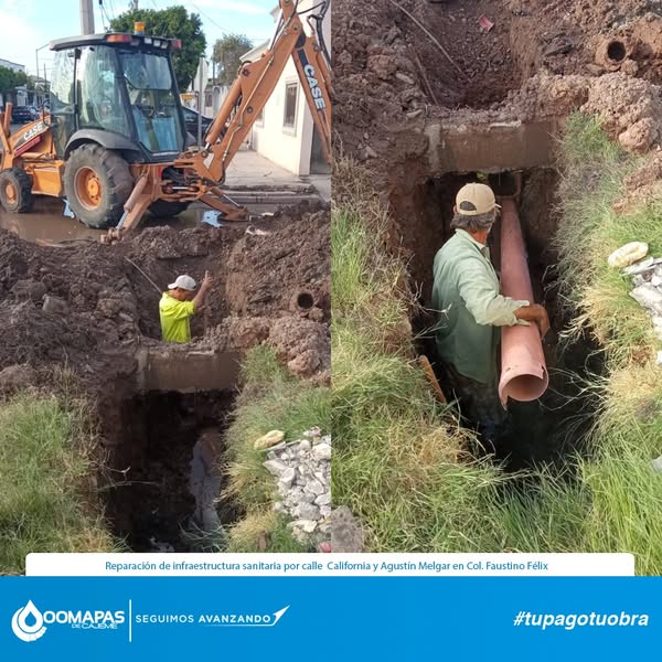 Reparación de infraestructura sanitaria por calle California y Agustín Melgar en Col. Faustino Félix.