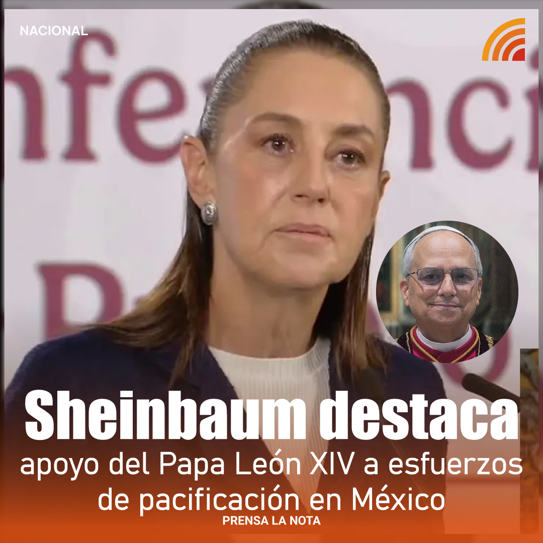 La presidenta de México, Claudia Sheinbaum Pardo, reveló que el Papa León XIV expresó su disposición de participar en los esfuerzos de pacificación en algunas zonas del país, así como de fortalecer la colaboración con el gobierno mexicano y la Iglesia Católica en programas orientados a la construcción de la paz.