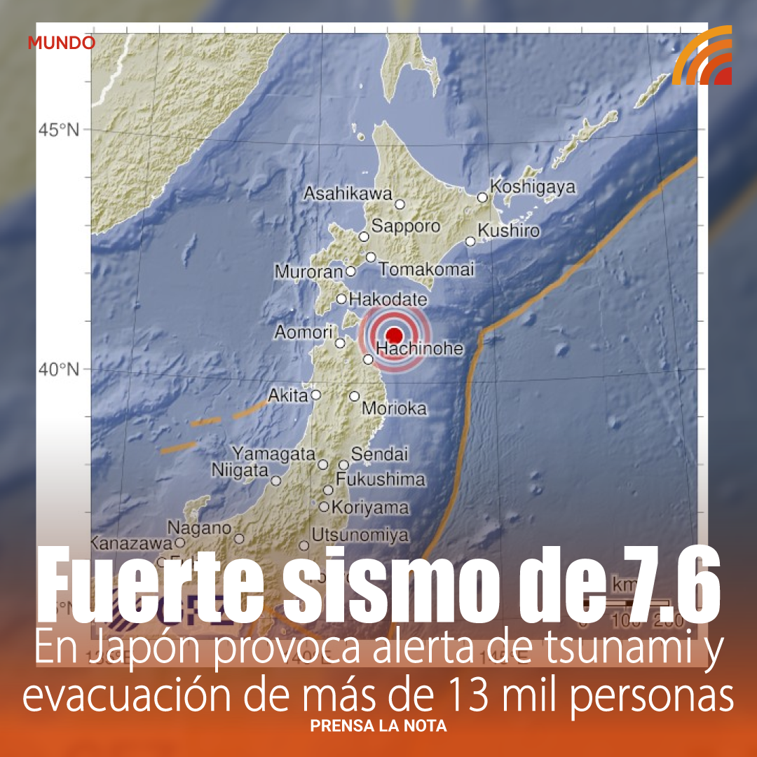 Un terremoto de magnitud 7.6 sacudió la noche de este lunes 8 de diciembre el norte de Japón, encendiendo inmediatamente las alarmas del país y activando una alerta de tsunami de hasta 3 metros de altura.