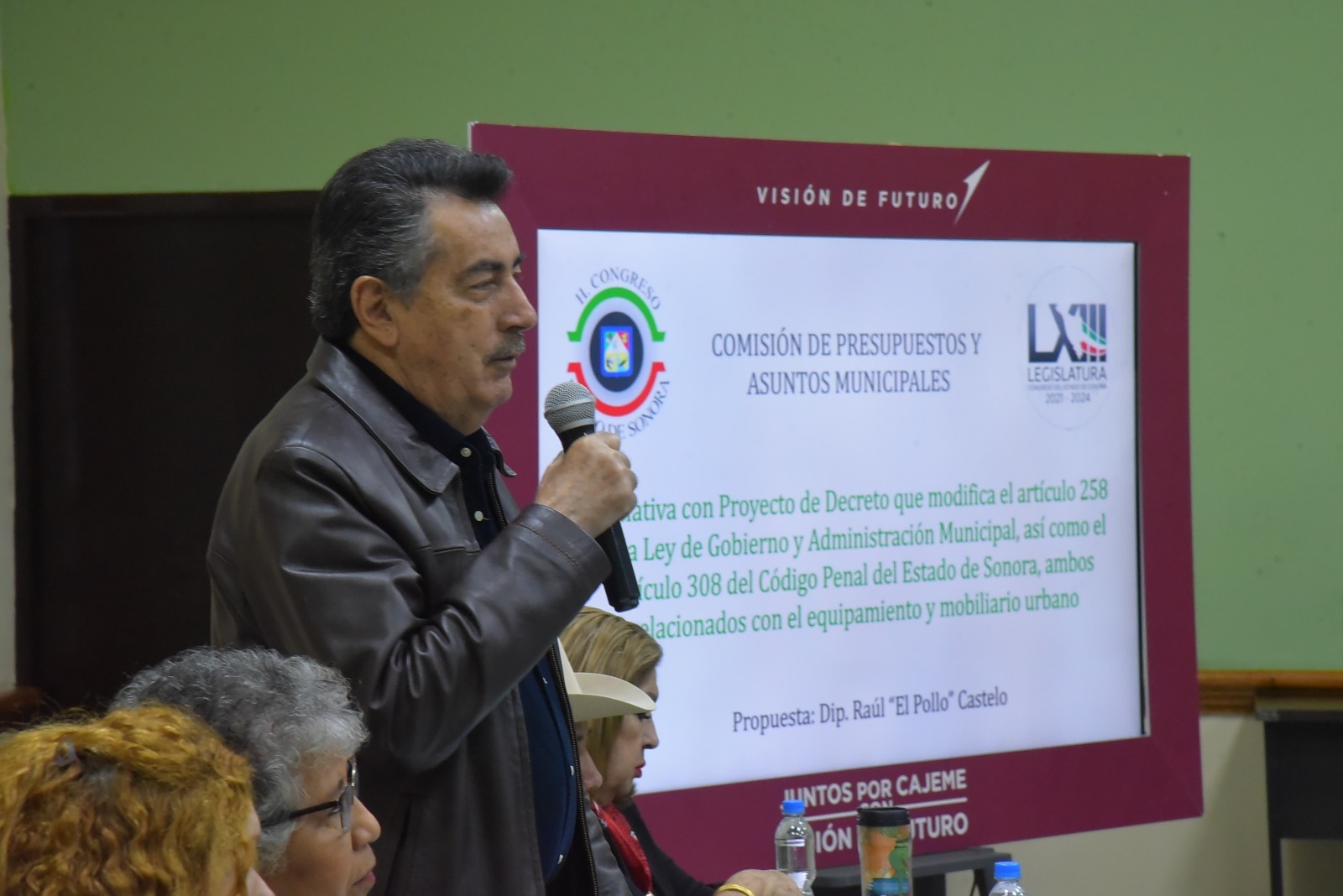 Con el objetivo de evitar, o en su caso erradicar, que se sigan presentando daños o robo al patrimonio municipal, tales como los perpetrados en contra del servicio de alumbrado público, la red de alcantarillado y agua potable, así como en los parques y unidades deportivas, Cajeme fue sede para socializar y escuchar propuestas ciudadanas para enriquecer la iniciativa con proyecto de decreto que modifica el artículo 258 de la Ley de Gobierno y Administración Municipal, así como el Artículo 308 del Código Penal del Estado de Sonora, ambos relacionados con el equipamiento y mobiliario urbano.