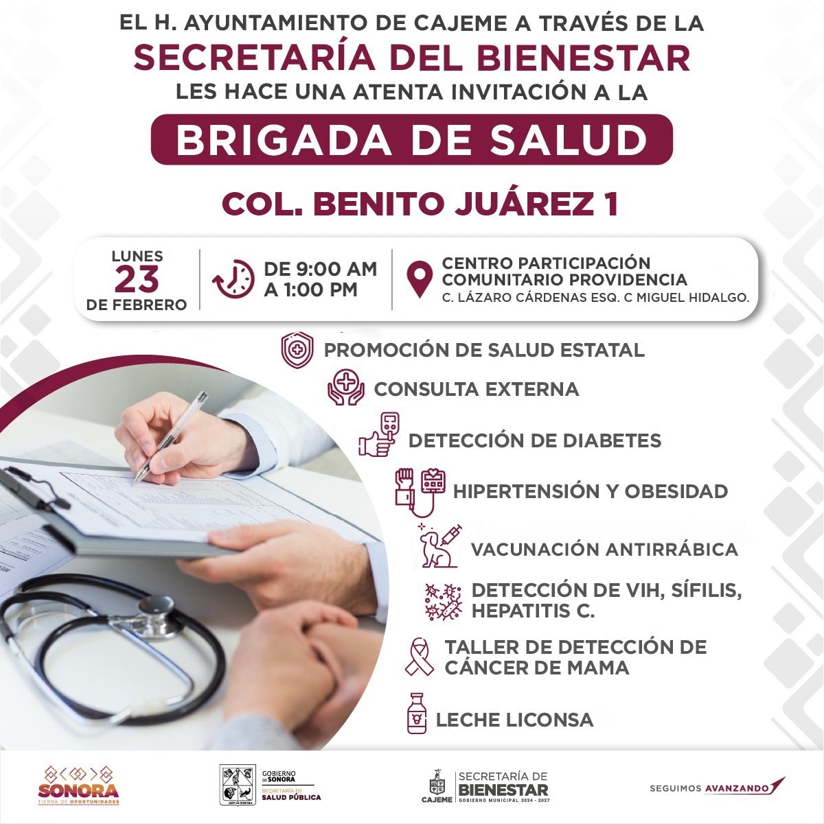 Acércate y aprovecha los servicios gratuitos: consulta externa, detección de diabetes, hipertensión y obesidad, pruebas de VIH, sífilis y hepatitis C, vacunación antirrábica, taller de detección de cáncer de mama y leche Liconsa.
