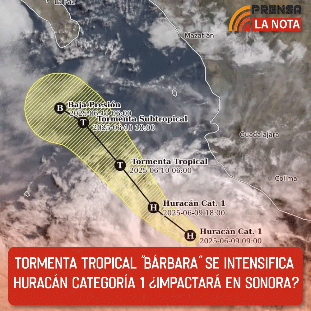 La mañana de hoy, 9 de junio, la tormenta tropical “Bárbara” ha alcanzado la categoría 1 en la escala de Saffir-Simpson, convirtiéndose en el primer huracán de la temporada en el Pacífico Nororiental, informó el Servicio Meteorológico Nacional.
