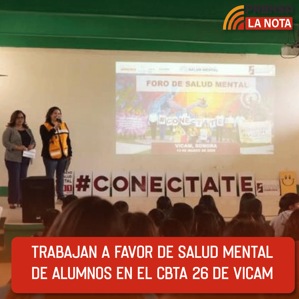 Debido a que la salud mental debe ser una prioridad para los jóvenes y adolescentes, estudiantes del Centro de Bachillerato Tecnológico Agropecuario (CBTA) 26 de Vicam participaron en la Jornada d Salud Mental Conéctate en la que se tuvieron actividades, un foro y la jornada de salud, informó la directora, Astarté Mirtala Trejo Ledezma.