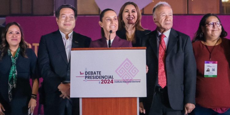 ‘’No solo ganamos el debate, sino que vamos a ganar la presidencia de la República el próximo 2 de junio”, celebró Claudia Sheinbaum ante medios de comunicación posterior al Primer Debate Presidencial del INE.
